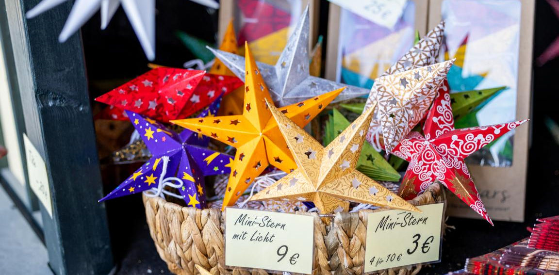 Whether red, yellow, pink, green, or purple—our colorful paper stars are a real eye-catcher during the dark season and decorate every room and every tree. The stars are handmade, and each one is unique. The combination of the highest quality papers from different countries gives our stars their unique charm.